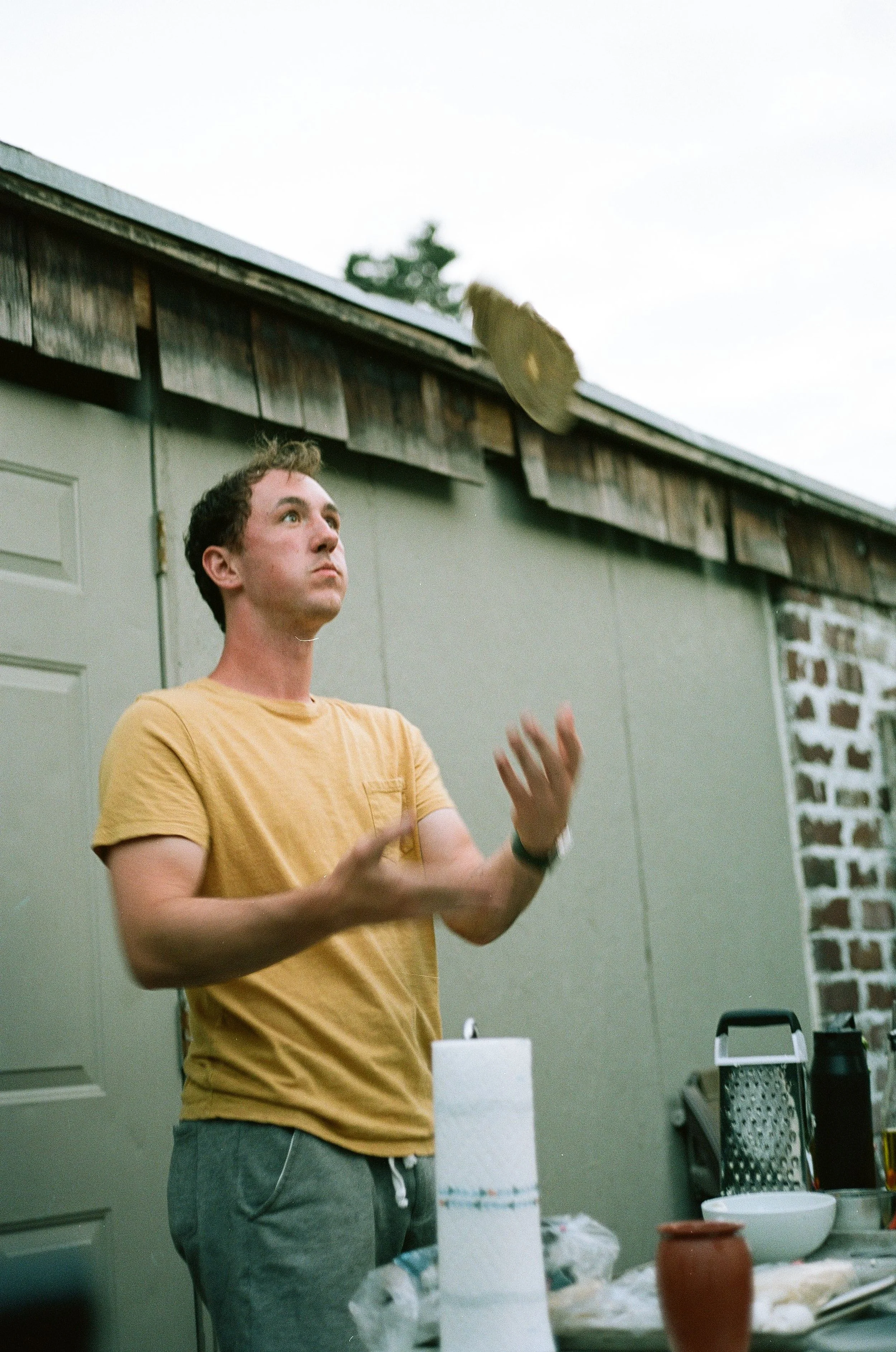 Lucas Chaufournier throws pizza dough, August 2023 (Contax G2, 45mm f/2.0, Kodak Porta 160)