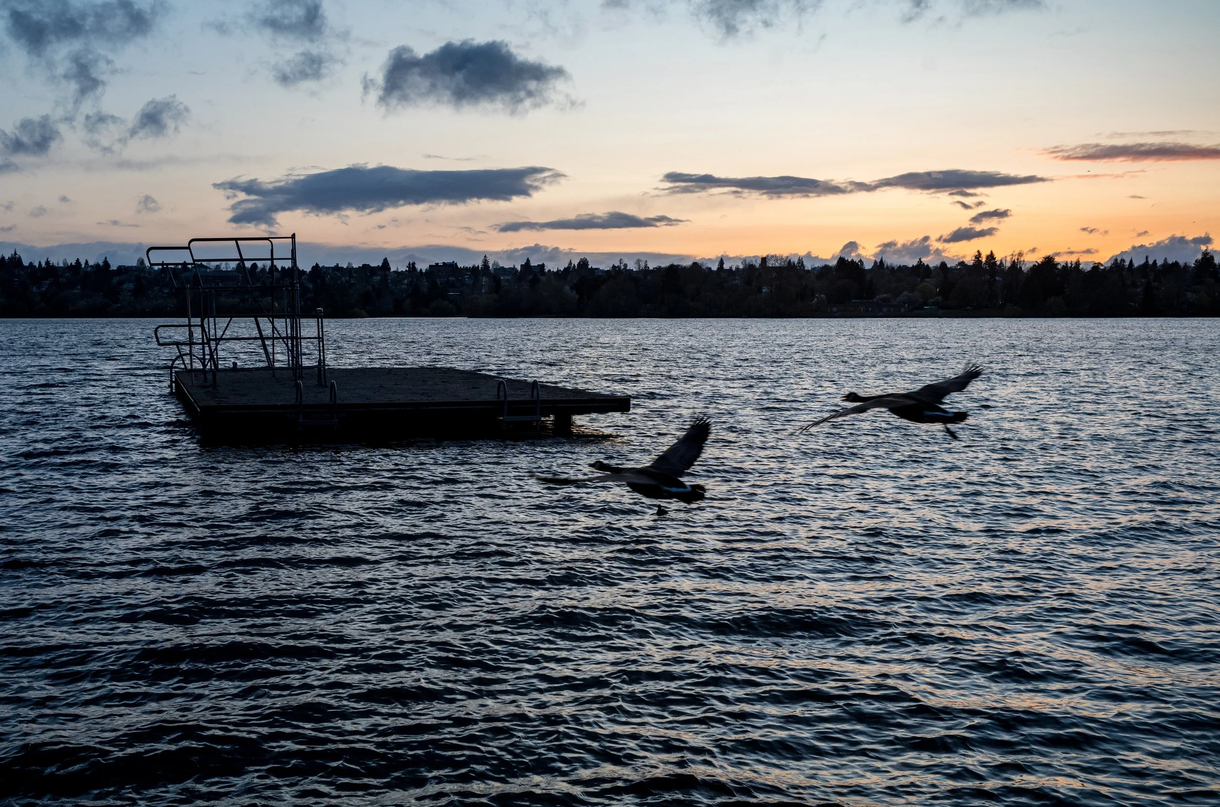 The courts are under the usual flight path for planes flying into SeaTac International, and falcons and bald eagles are occasionally seen overhead during games. In the pathway between the courts and lake, hundreds or thousands of people walk by every day, and many stop to curiously peek through the fence and see what all the noise is about. Green Lake has always been a core part of Seattle and was formed 50,000 years ago by the same glacier that dug Lake Washington and Lake Union. It was given its English name during an 1855 survey, having been long called “dxWTLusH” by the Duwamish. The view boasts one of the best sunsets in Seattle, and a famous dock and diving board just offshore have been the subjects of photos for almost a century.